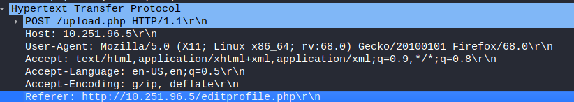 Expanding the packet entry, I found that the referer field was pointing to a different webpage, which could have probably been used for uploading the web shell