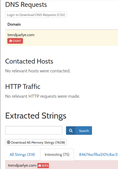 Having a look at the extracted strings section, this file has contacted an external domain too.