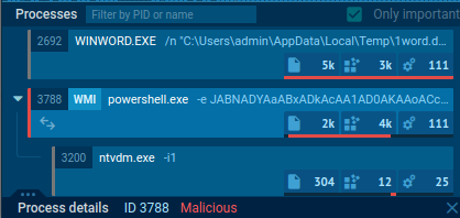 Two .exe files execute as we open it (namely powershell.exe and ntvdm.exe)