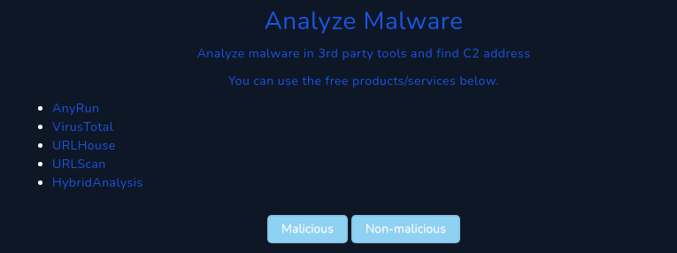 AnyRun VirusTotal URLHouse URLScan HybridAnalysis