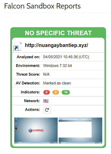 Let’s analyze it on the Hybrid-Analysis platform as well, where 2 search results pop up for the domain