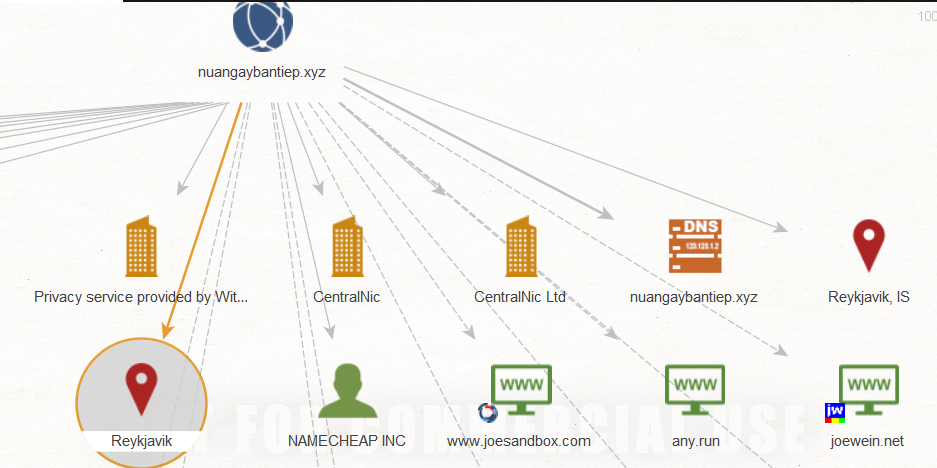 Unable to graph any mail addresses from this suspicious domain, we can very well state that the origin of the attack is from Reykjavik, the capital of Iceland