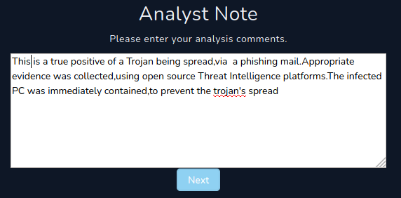 In the very next screen, we are asked to submit artifacts derived from the case