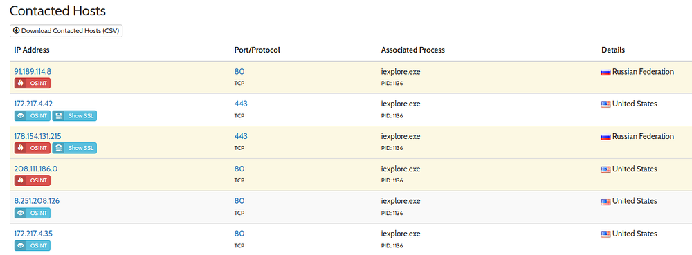 We can find that the host hasn't contacted the malicious domain — from the ‘Contacted Hosts’ history, from Hybrid-Analysis
