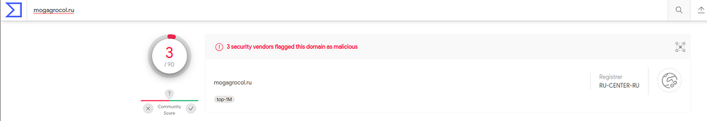 Virustotal analysis of domain (mogagrocol.ru)