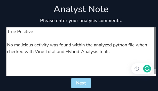 In this previous section, we had analyzed the artifact and deduced that the file was indeed not malicious