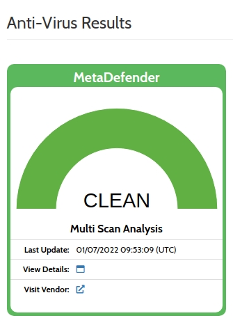 Let’s go ahead with our Swiss Army Knife tools Hybrid-Analysis and VirusTotal