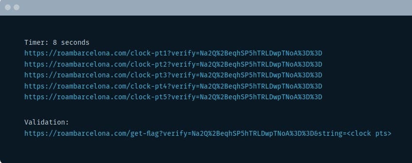 The challenge here is that the strings need to be collected in under 10 seconds and inserted as parameters in the validation link